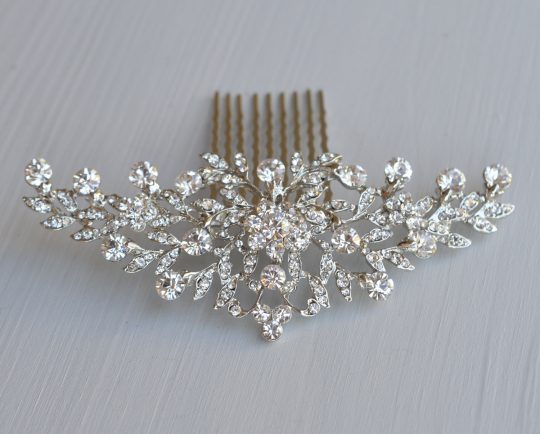 Bijou de cheveux en cristal, inspiré par le nature, sur monture en métal plaqué argent. Un accessoire pour cheveux idéal pour une cérémonie ou un événement exceptionnel.